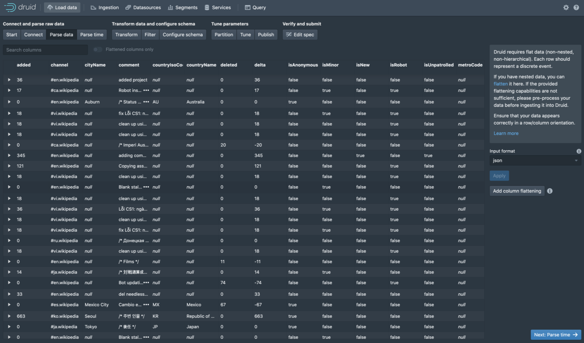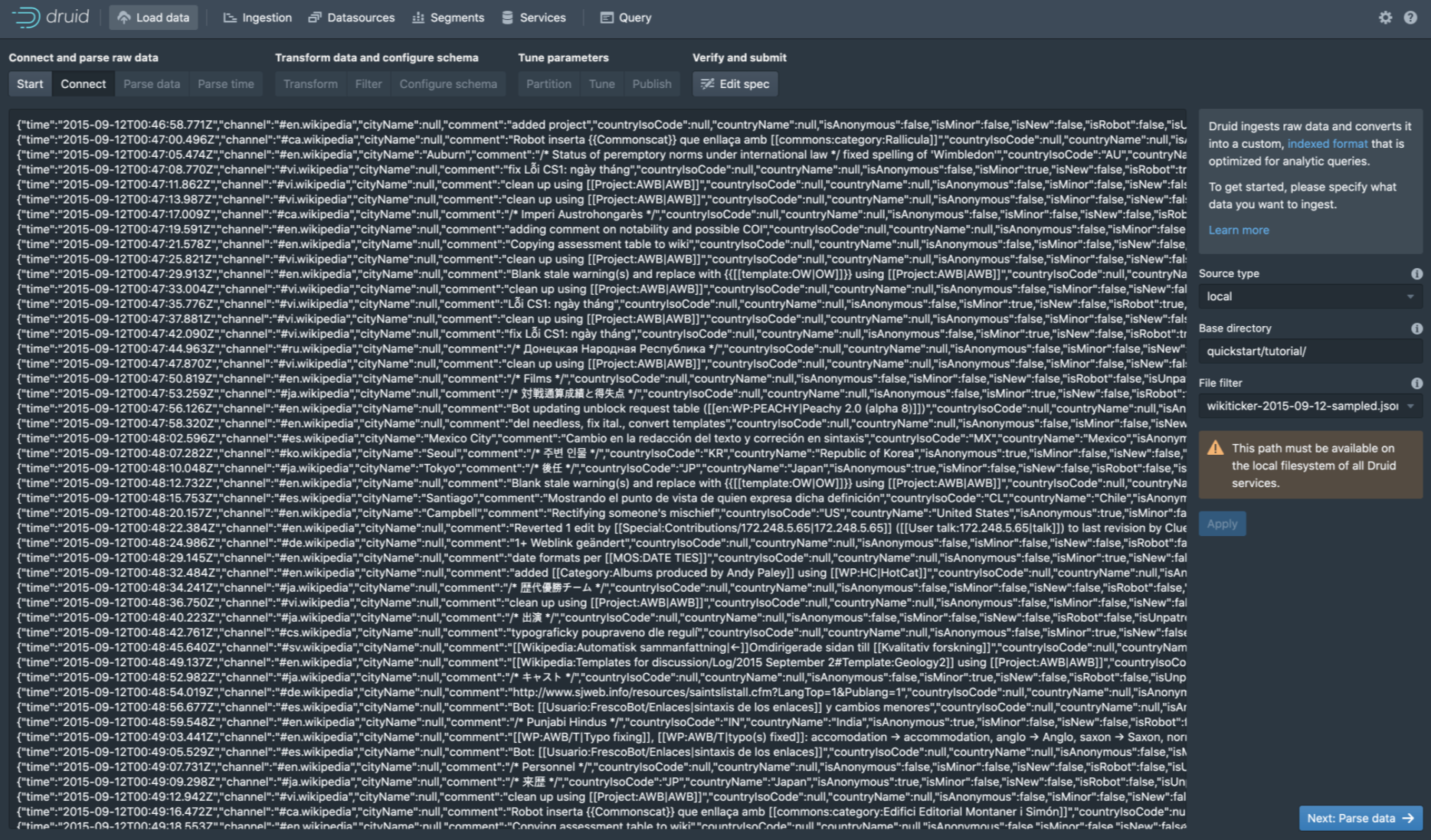 file filter : wikiticker-2015-09-12-sampled.json.gz