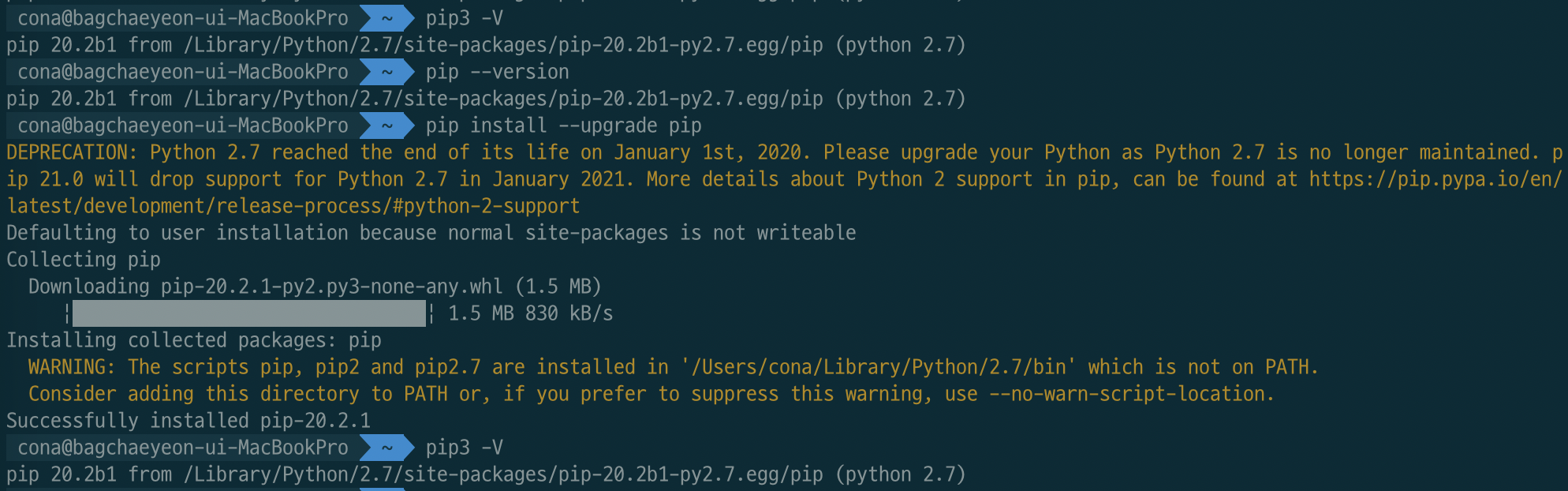 pip이 자꾸 python2.7 버전을 경로로 잡는 문제